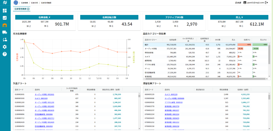 過剰在庫・欠品リスクのある品目を自動的に見える化します。