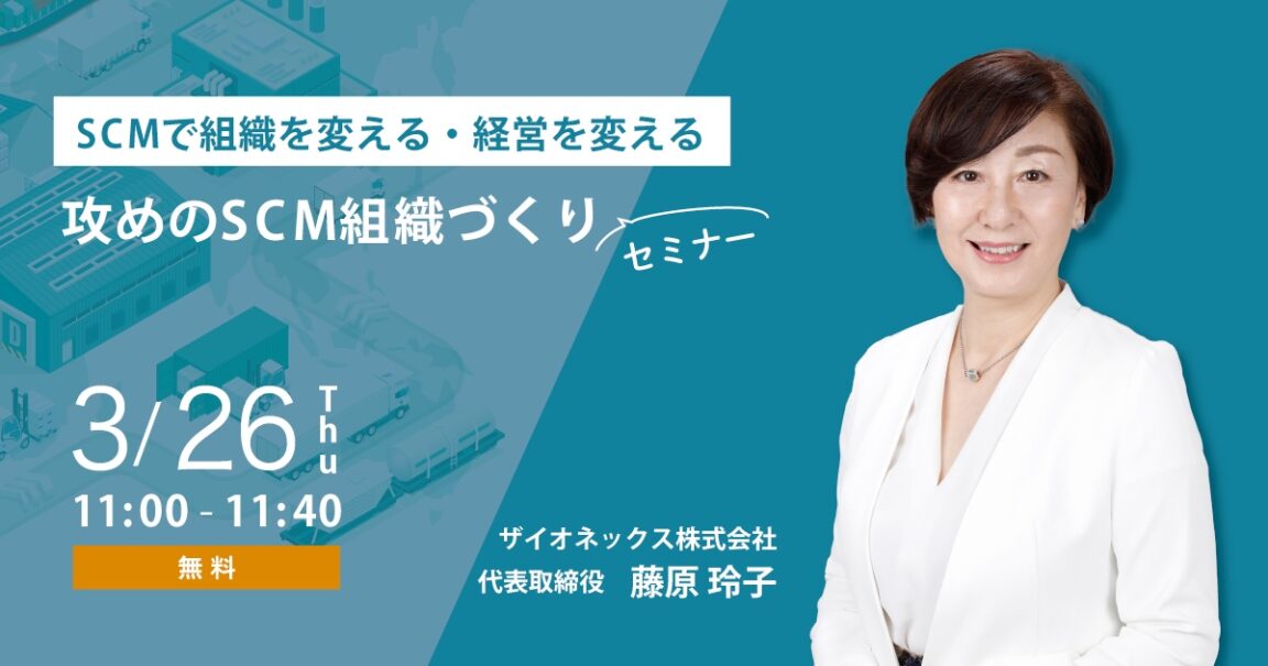 そこで本セミナーでは、組織と役割の観点からSCMを見直し、”経営変革の実現手段”としてSCMを位置付けるアプローチをお伝えいたします。